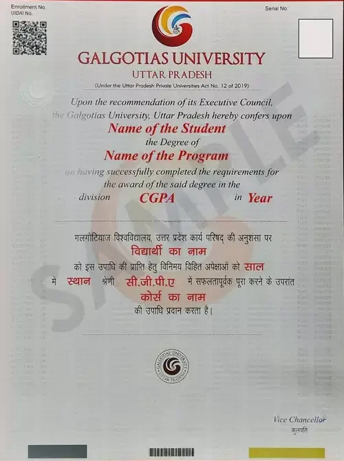 UGC-approved, NAAC-accredited, and recognised for its academic excellence, Galgotias University degrees are respected in academia and industry alike.